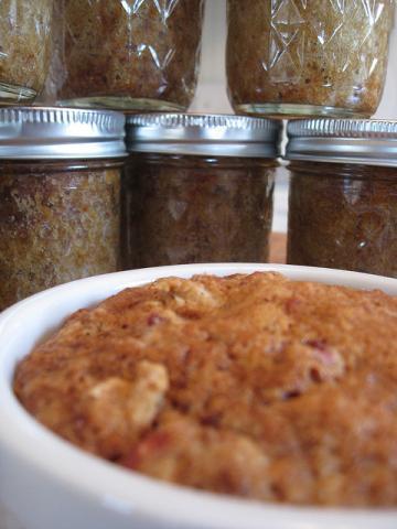 Place the jars on the rack in the outdoor cob oven, or the cookstove oven, for 50 minutes to an hour. Use the toothpick test to be sure it’s finished cooking.