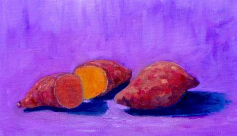 The sweet potato comes in many varieties. Most familiar is the orange fleshed with orange-tinged skin and long, tubular shape with tapered ends. Sweet potatoes also can be more round like a potato and grow in hues of white, purple, cream, pink, and yellow. Those marketed with the term “gold” or “red” are the orange variety. The sweet potato in America is often prepared as a sweet side dish. One popular preparation is the candied sweet potato. It is also mashed with marshmallows added to the recipe or made into a custard. Aside from a delicious sweet side dish the sweet potato is high in vitamins A, B5, and B6, as well as thiamin, niacin, and riboflavin. Its orange hue comes from the large amounts of carotenoids. It also contains potassium, calcium, and iron and is a source of vegetable protein.